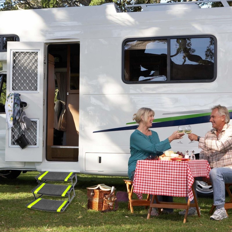- Blinking in the Night: RV step cover adds 2 reflective strips to make it easier for seniors and pets to walk up and down at night. They can catch mud and dirt underfoot, thus keeping the RV interior and RV stairs clean