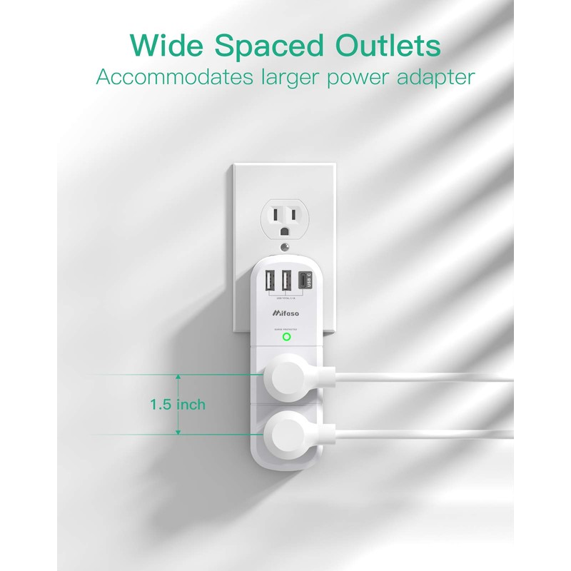 Mifaso USB Outlet Extender Surge Protector - with Rotating Plug, 6 AC Multi Plug and 3 USB Ports (1 C), 1800 Joules, 3-Sided Swivel Power Strip Spaced Splitter for Home, Office, Travel