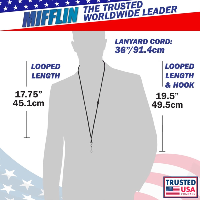 MIFFLIN-USA Adjustable Safety Lanyards for ID Badge Holder & Face Mask (Black, 36 Inch, 50 Bulk Pack)