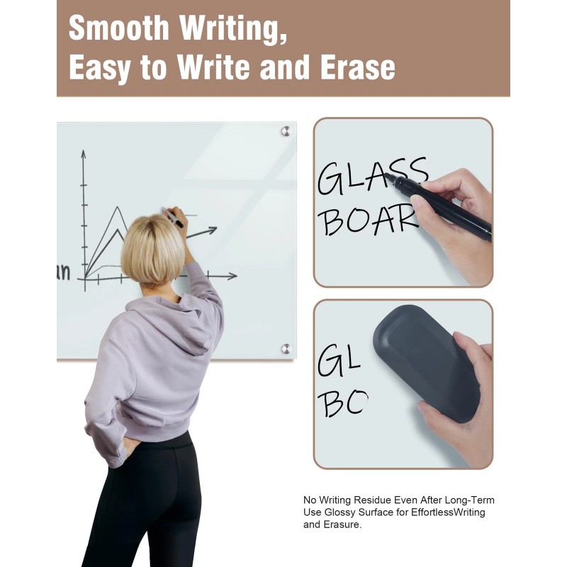 ✔ 【Smooth, Stain-Resistant Surface】Crafted from high-quality tempered glass, this whiteboard offers a smooth writing experience and is resistant to stains, ghosting, and scratches. Erase easily without worrying about leftover marks, even after frequent use.