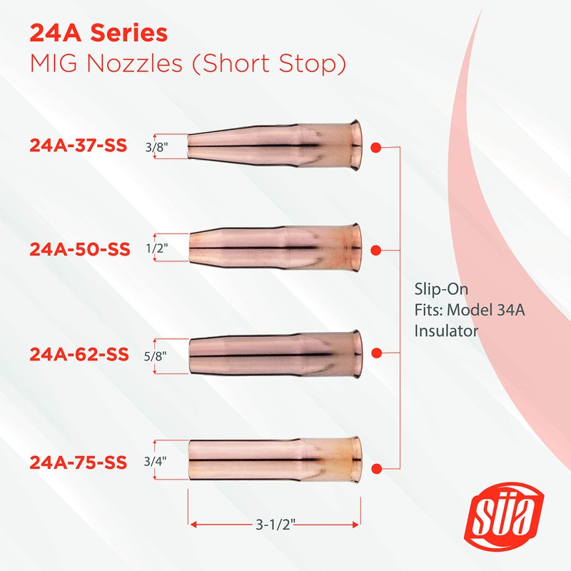 - This is a Model 24A Slip-On and Short Stop Nozzle, that requires an Model 32A insulator to thread onto the gas diffuser.