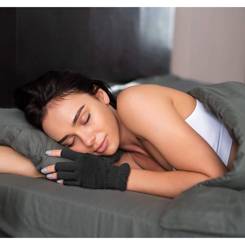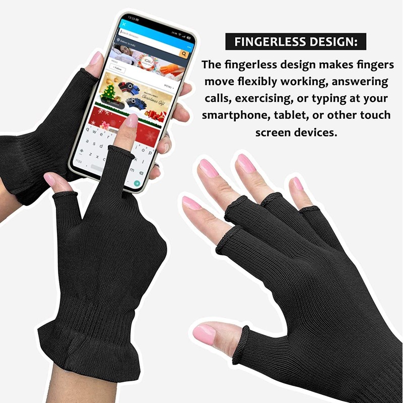 - Diseño sin dedos: el diseño sin dedos hace que los dedos se muevan de forma flexible trabajando, contestando llamadas, haciendo ejercicio o escribiendo en tu smartphone, tableta u otros dispositivos de pantalla táctil mientras estás hidratando el cuidado de tus manos. Al mismo tiempo, evita la unión de los guantes a la uña