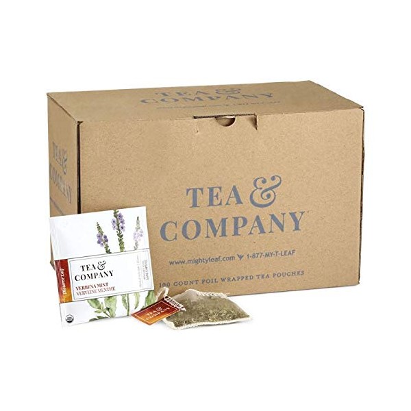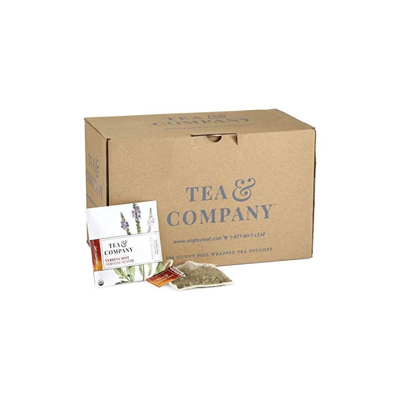 - 100 silken stitched tea bags of Verbena Mint Tea from Tea & Company an ultra premium Mighty Leaf Tea line