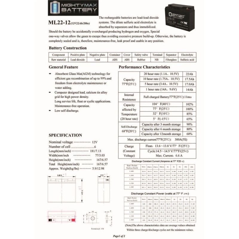 Volts | 12V | Amp Hour | 22Ah |