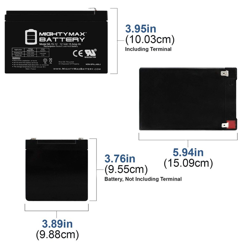 - Dimensions: 5.94 inches x 3.89 inches x 3.95 inches. Terminal: F2. Listing is for the Battery only. No wire harness or mounting accessories included.