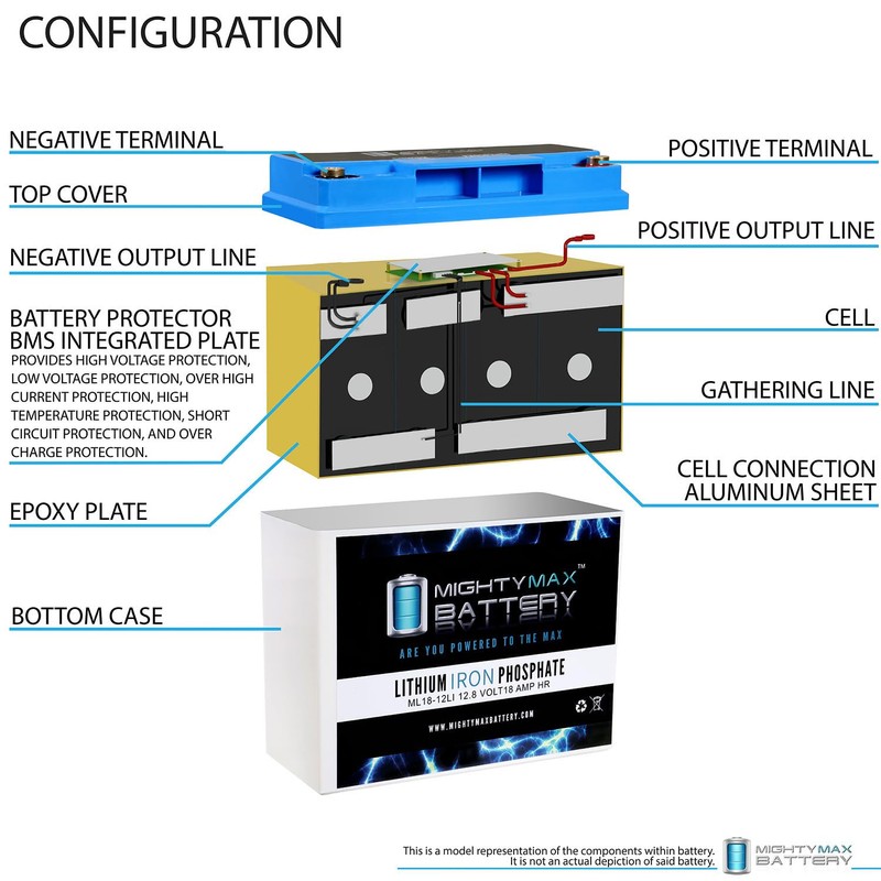 - ML18-12LI is a 12V 18Ah Lithium iron phosphate sealed, rechargeable and maintenance free battery. Direct drop in lead acid replacement.