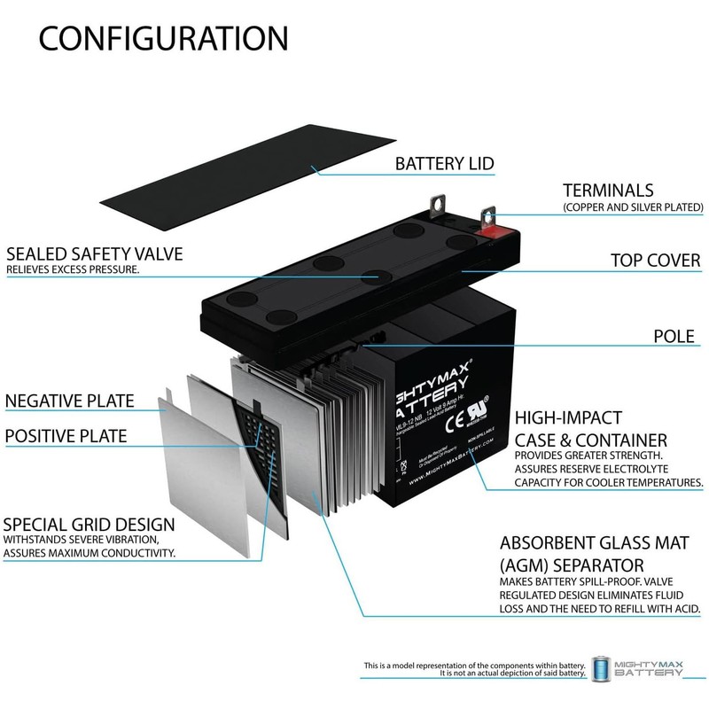 - ML9-12NB SLA is a 12V 9AH Sealed Lead Acid (SLA) rechargeable maintenance free battery, Pack of 2 - UL Certified