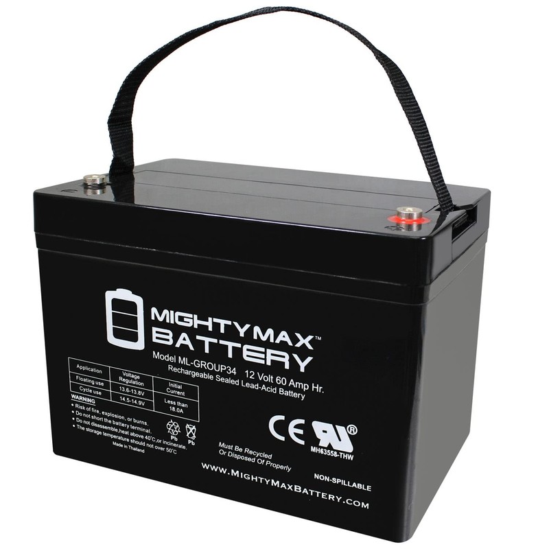- ML-GROUP34 is a 12V 60AH SLA rechargeable maintenance free battery - UL Certified
