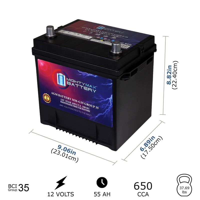Mighty Max Battery MM-G35 Group Size 35 12V, 55Ah, 100RC, AGM, 650 CCA, Replacement Battery Compatible with Toyota Tercel 88