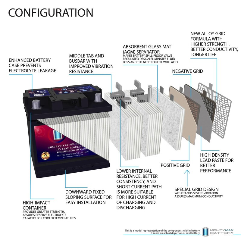 • Fast Starting Power: This 12V 50Ah 570 CCA delivers strong, steady starts is ready for any weather in any season.