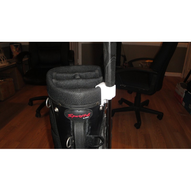 • Holds putter on bag with the grip pointing up, while riding on a golf cart.