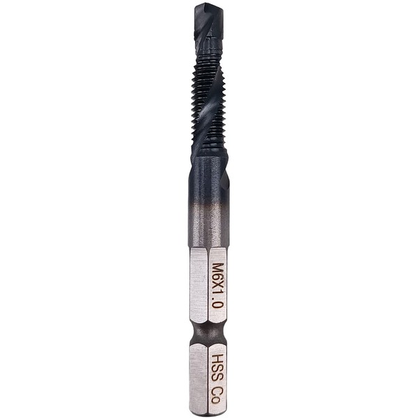 Migiwata Hexagonal Spiral Flute 2-in-1 Combination Drill and Tap Set Black
