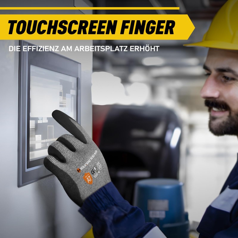- Touchscreen fingers: these safety gloves are equipped with a touch screen function that allows you to operate touchscreen devices without taking off the gloves, which increases efficiency in the workplace