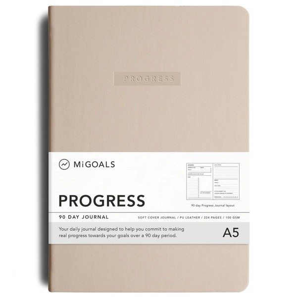 MiGoals Undated 90 Day Progress Journal for Goal, Gratitude and Habit Tracking, A5, Best Planners for Productivity (Sand)