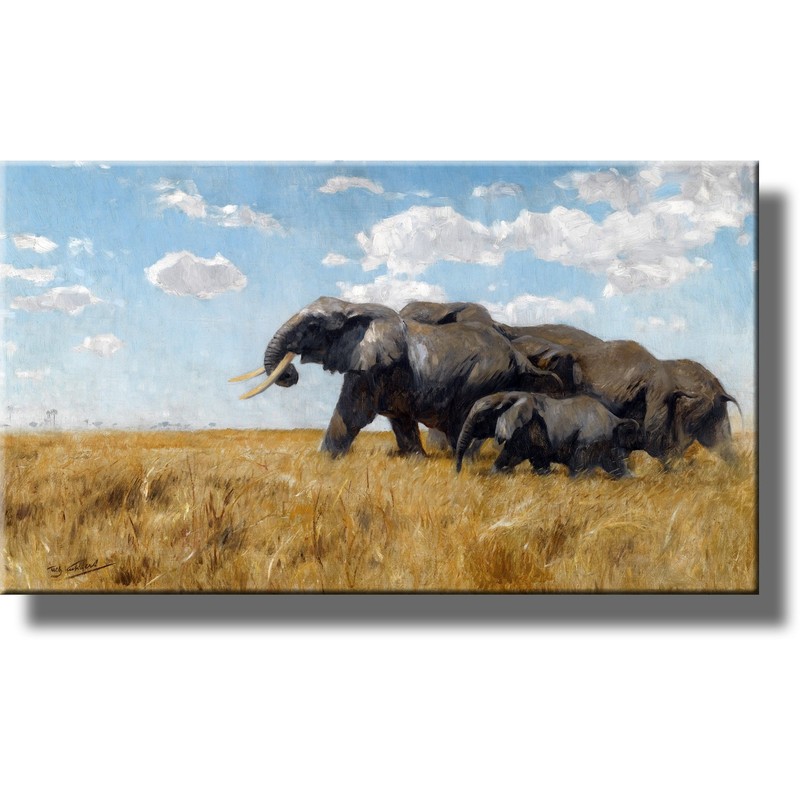 Migrating Elephants Picture by Kuhnertde on Stretched Canvas, Wall Art Décor, Ready to Hang!