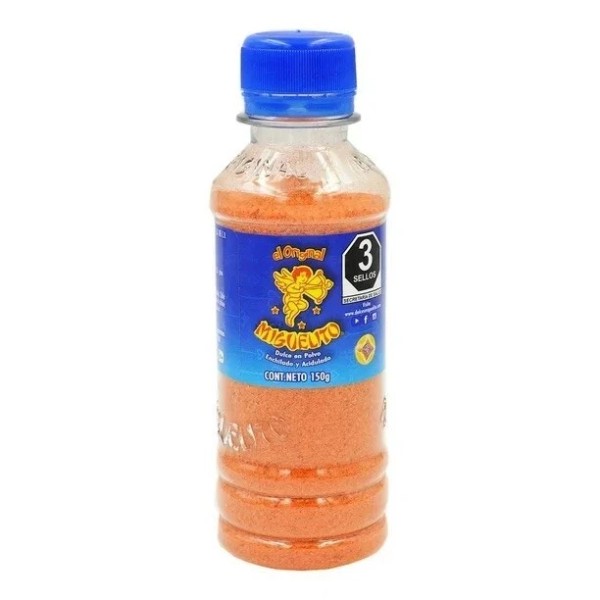 Dale a tus botanas, fruta picada o verdura rallada el toque de sabor que estabas buscando con el dulce en polvo Miguelito El Original, el cual da un sabor enchilado y acidulado inigualable, rindiendo mucho más con su presentación en botella de 150 g.