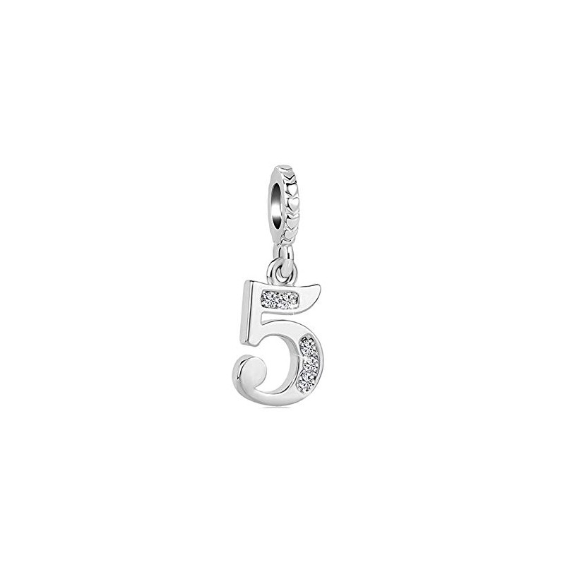 MiiFort Lucky Number 5 Five 5th Charm for Bracelets Pendant Necklaces Women Men Silver Tone Crystal Clear Cubic Zirconia