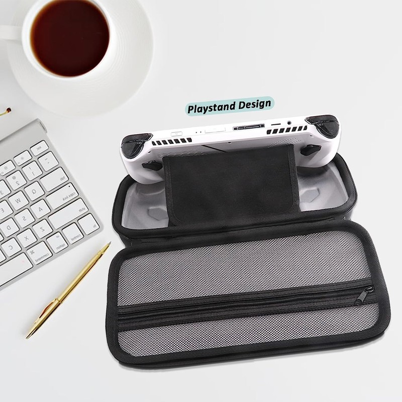 - [Unique Design] The Asus Rog Ally case can be either a gaming handheld protective case or a storage bag. There is a mesh pocket on the inside that can store gaming handheld accessories such as handle, handle wristband, receipt game card, earphone, adapter, cables, etc. It is very convenient and practical.