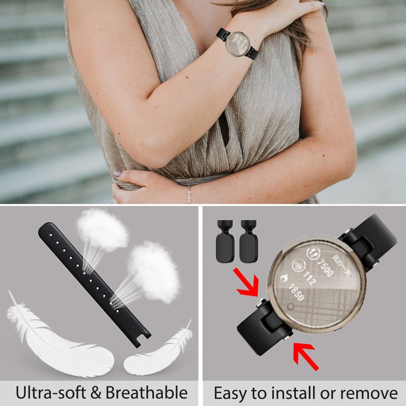 - [Ultra-soft & Comfortable] The Garmin Lily wristband is made of finely processed high-grade leather material which is durable and flexible, not irritating your skin at all. Give you an ultra-soft and comfortable touch. Even if you wear it for a long time, it will not cause any discomfort.