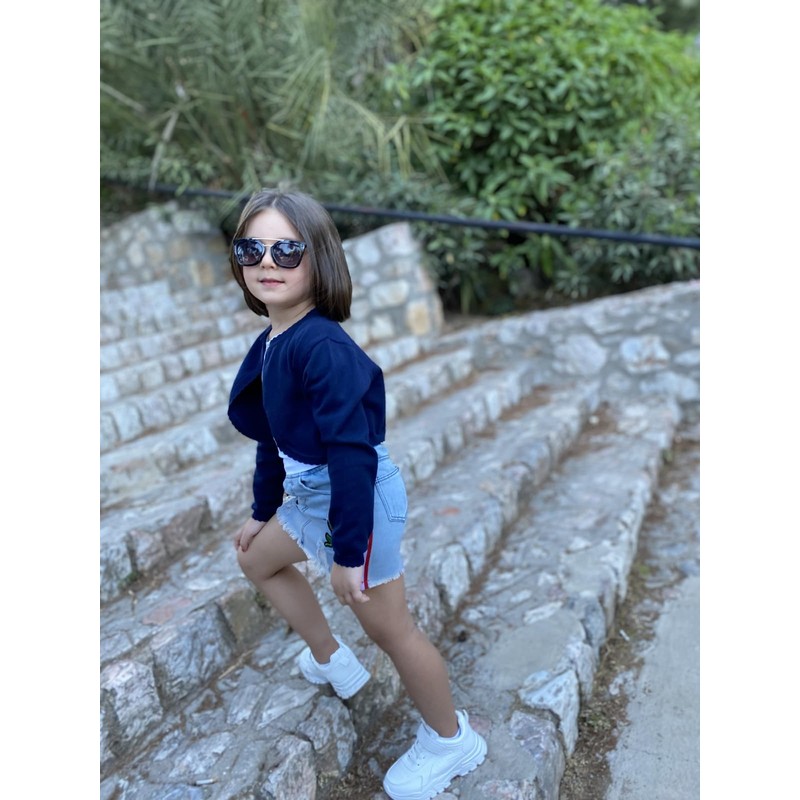 Miipat Girls' Cardigan One Button Baby Girl Bolero Jacket Kids Long Sleeve Shoulder Jacket Knitted Clothing, darkblue