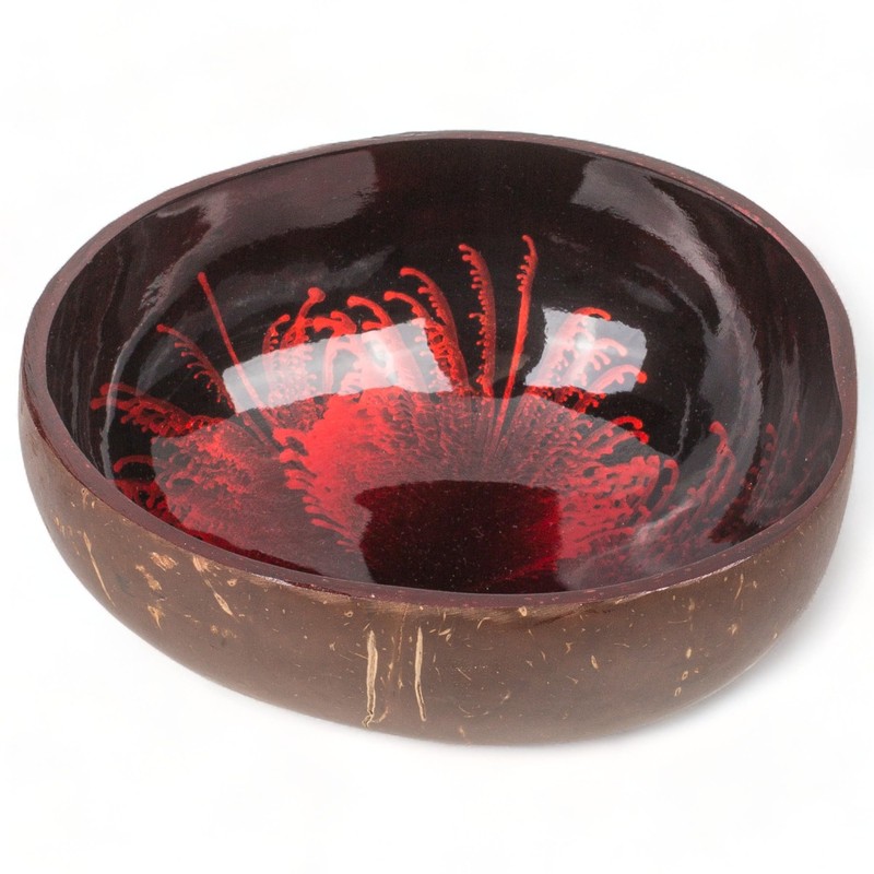 MIJOMA Exotic Coconut Bowl, Colourful Varnished Interior, Robust and Aesthetic, Perfect for Unique Bowl Creations, 13 x 13 x 6 cm (Red)