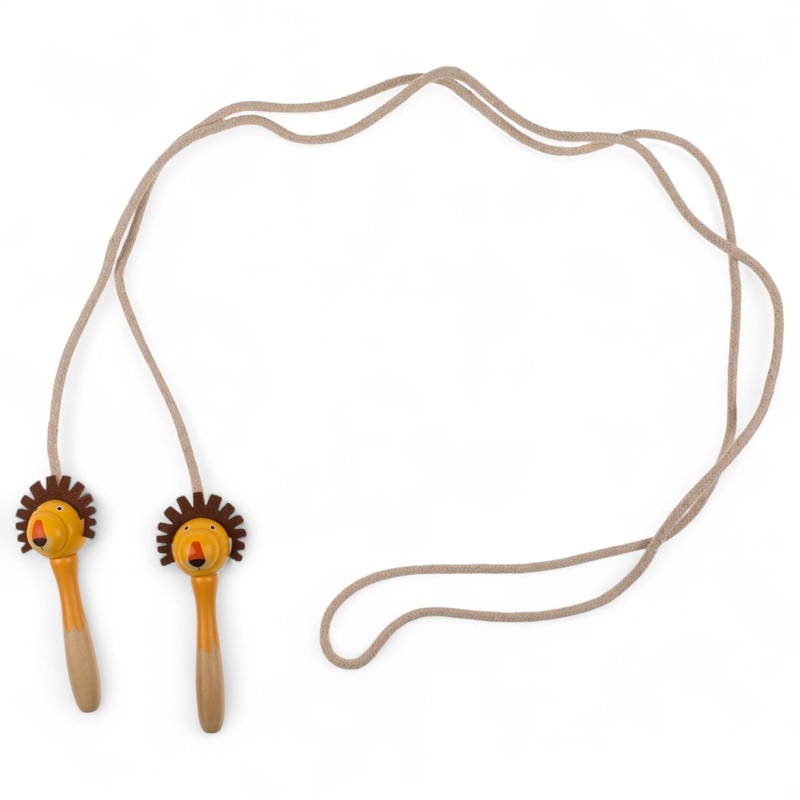 MIJOMA Holz-Springseil für Kinder – Seilspringen mit Tiermotiven – 235 cm Länge – Ergonomische Griffe – Pädagogisches Spielzeug für drinnen & draußen (Löwe)