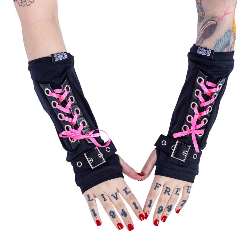 MIJOMA Poizen Industries 1 Pair of Arm Warmers Gothic Punk Navya Arm Warmers One Size Unisex, Black-Pink