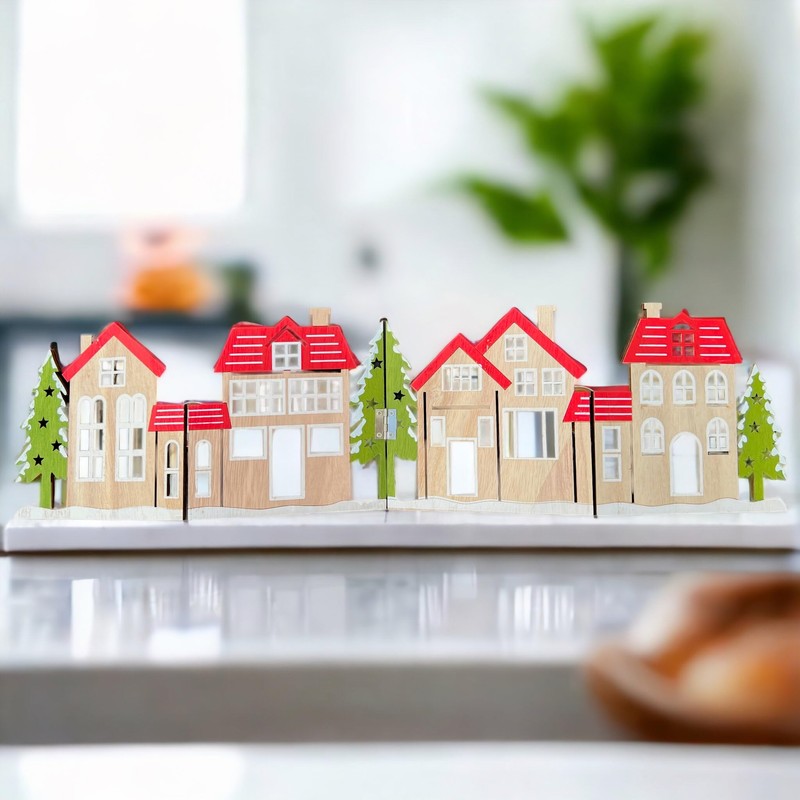 MIJOMA Winter Scene - Christmas Wooden Scene to Stand, 4-Piece Set, to Highlight the Cosiness of Your Home, Ideal for Candlelight (Winter Village - 61 x 16.5 cm)
