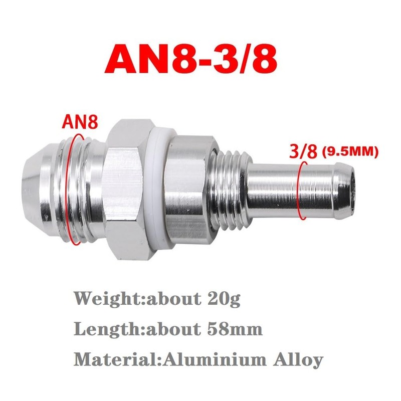 MiJunHD AN8 Male Flare Bulkhead to 3/8 (9.5mm) Hose Barb Fuel Cell Hose Converter Adapter,1Piece Fuel Tank Line Push On Barb Connector & Washers