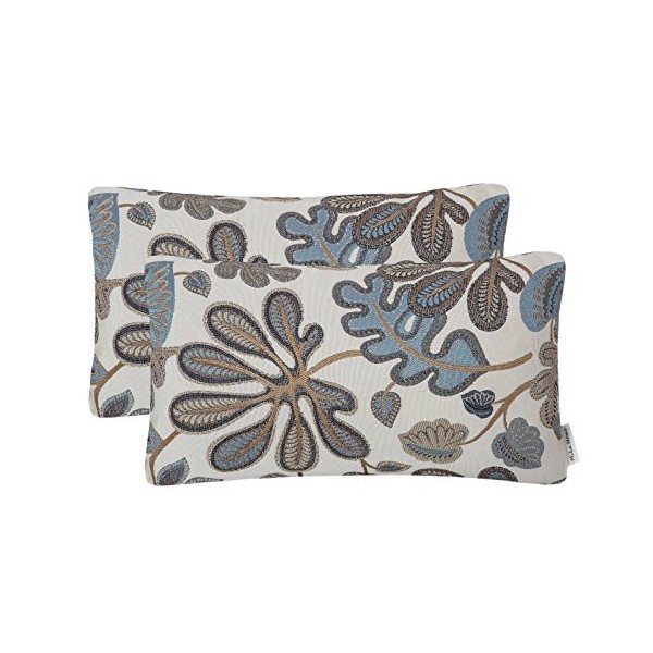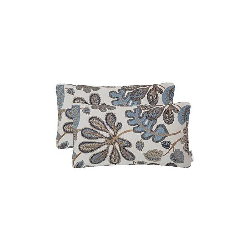 Mika Home Set of 2 Jacquard Tropical Leaf Pattern Oblong Throw Pillow Covers Accent Pillowcase 12X20 Inches,Blue Cream