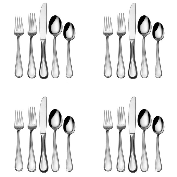- This 20-piece set includes 4 each: salad forks, dinner forks, dinner knives, dinner spoons, and teaspoons.