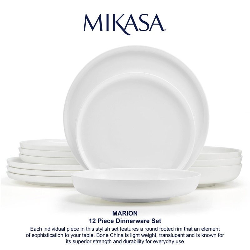 Mikasa Marion Chip Resistant 12 Piece Dinnerware Set, Service for 4 White
