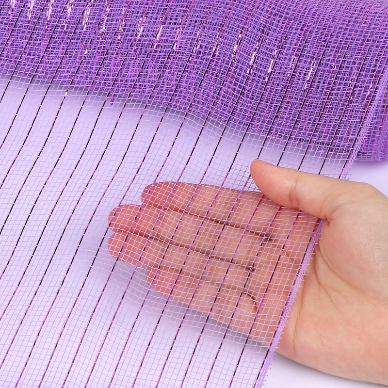MIKIMIQI Deco Mesh 5.9 Inch x 30 Feet Decor Mesh Ribbon with Metallic Foil Deco Mesh Wreath Supplies Ribbon Mesh Roll for Spring Wreaths Craft Party Decor, Not Wired (Light Purple)