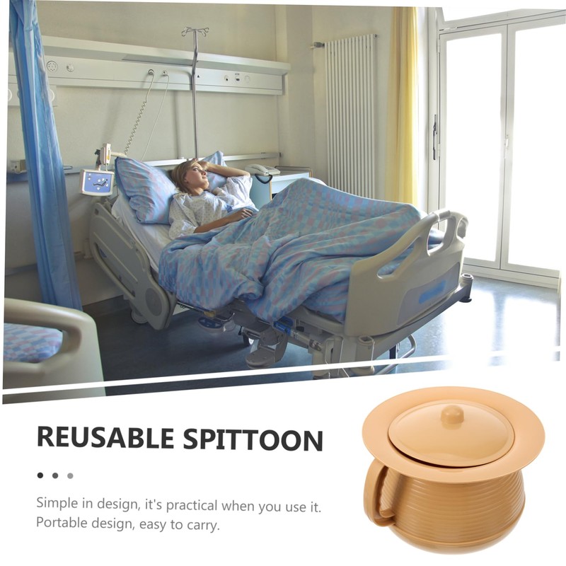 - Bedside potty:sealed with a lid to isolate odors, this spittoon is easy to use at home travel and easy to move,hospital potty