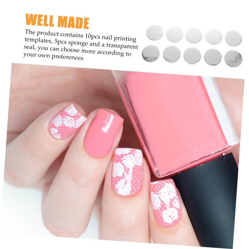 - Practical, the product contains 10pcs nail printing templates, 5pcs sponge and a transparent seal, you can choose more according to your own preferences nail stamper.
