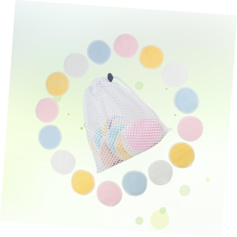 Mikinona 16Pcs Makeup Remover Pads Washable Face Wipe with Laundry Bag Soft Double Layer Cleansing Pads for Eye Makeup Facial Cosmetics Blue Pink White Yellow