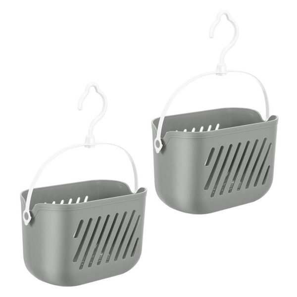 Mikinona 2pcs Hanging Storage Basket for Bathroom Kitchen Plastic Organizer with Hook Versatile Shower College Dorm Storage for Toiletries Items