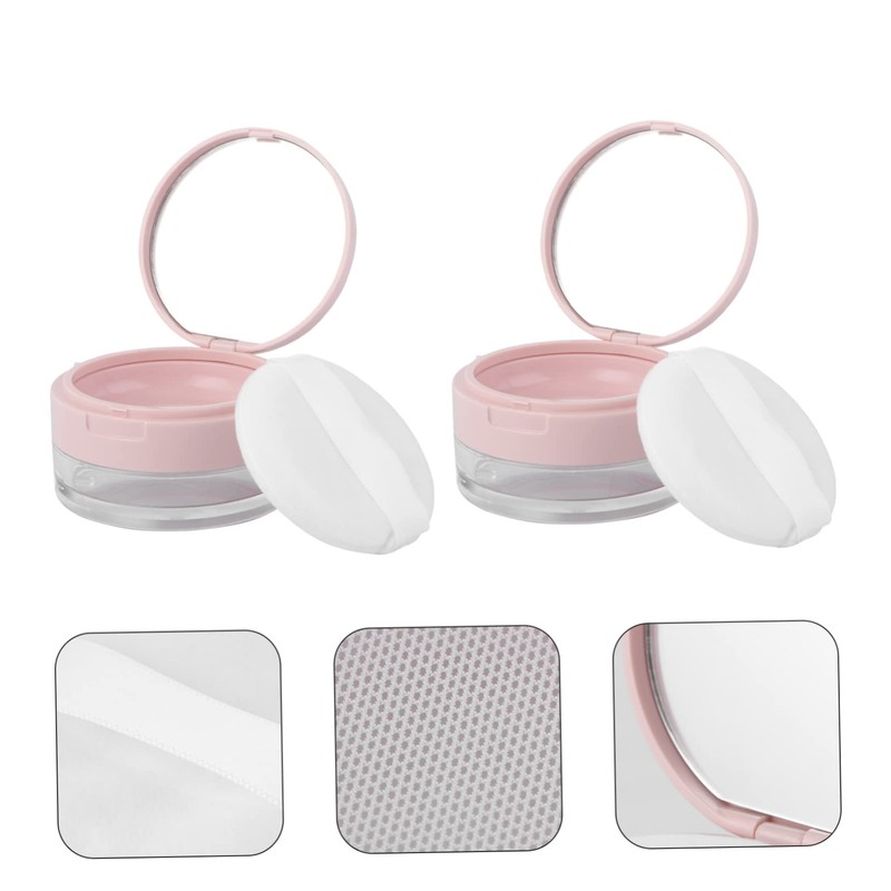Mikinona 2pcs Powder Puff Case Triangle Puff Translucent Face Loose Face Powder Empty Loose Powder Container Empty Loose Containers Loose Powder Containers Mini Puff Puffers Sponge Pink