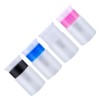 - Color: Transparent, Pink, Blue and Black plastic sample bottle.