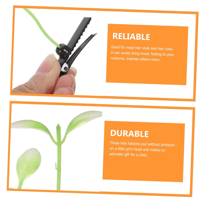 sprout clips Very suitable as hair decoration for little and a great your child.decorative hairpins Do you like to dress up at party? Are you worried about what you want to give your daughter or niece? Take a look at this very adorable hair clip, creative and lovely bean sprout shape