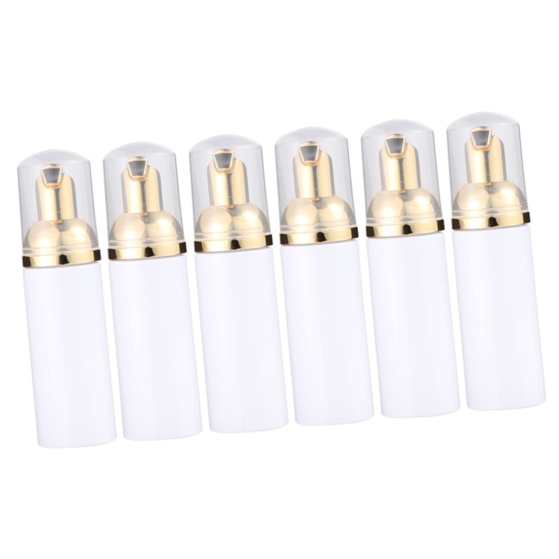 Mikinona 6pcs Foaming Pump Bottle Sturdy White Cosmetic Dispenser Golden Pump for Travel Toiletries and Bubble Making
