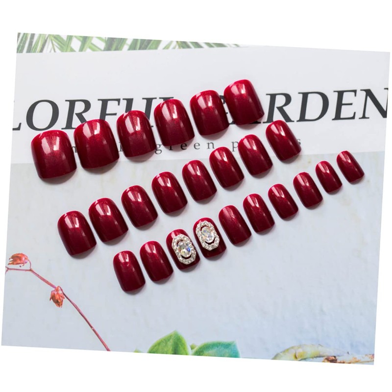 Mikinona Diy False Nails Set 24pcs Red Nail Stickers Girls False Nail Tips No Smell for Home or