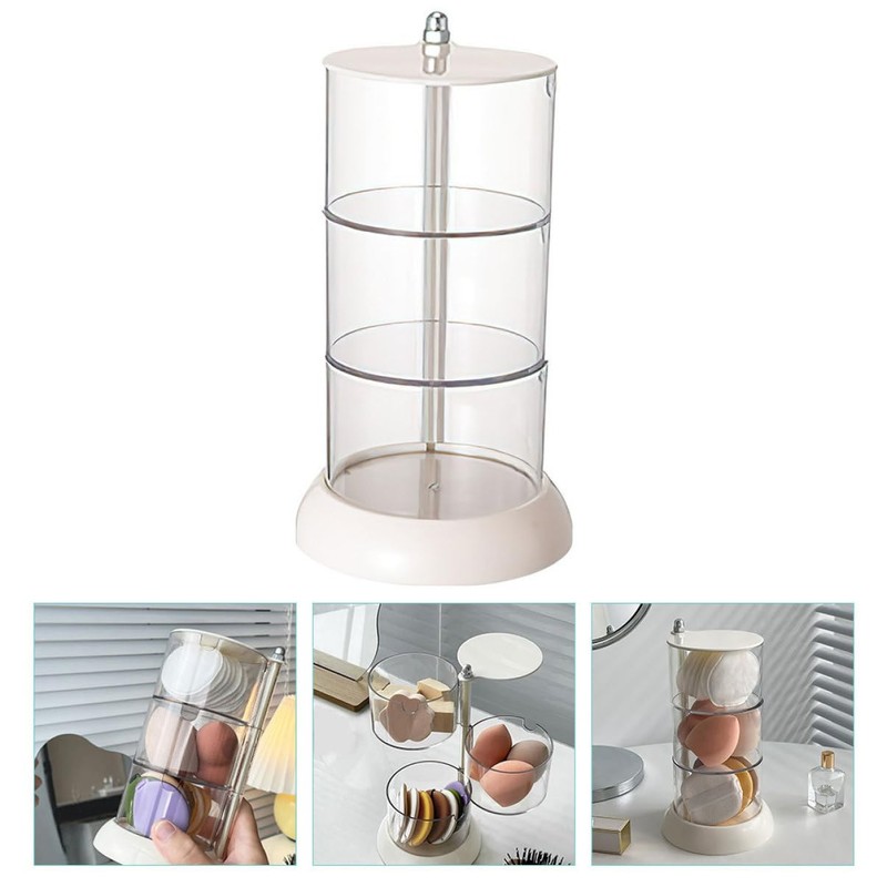 desktop makeup puff holder It can be vision and clearly known where the items are stored.makeup puff holder Multi-layers and rotatable design can offer you more convenience.organizer This storage box is for storing cotton pads, powder puff and other cosmetic products.rotatable powder puff holder Easy to store and organize, can be a present choice for your women family or friends
