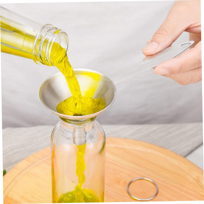 - Stainless steel funnel: each funnel has a narrow stem, for filling small bottles and containers while keeping the kitchen counter from spills. can avoid and spills when infusing oils, home- brewing, spirits, flour, salt and etc. metal mini funnel
