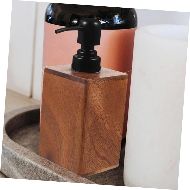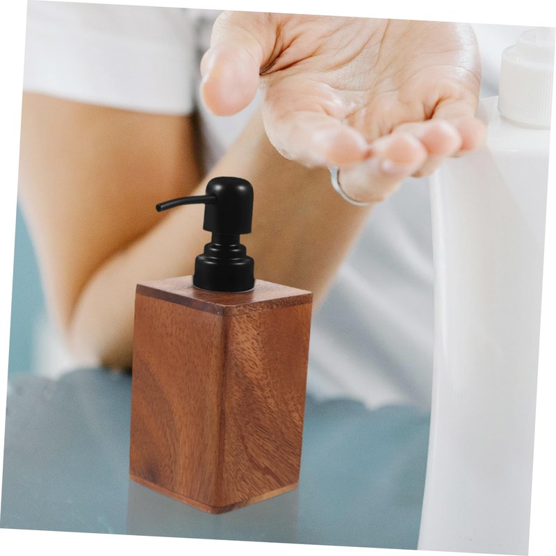 Mikinona Refillable Pump Bottle Press Pump Empty Lotion Bottle Walnut Wood Hotel Room Care