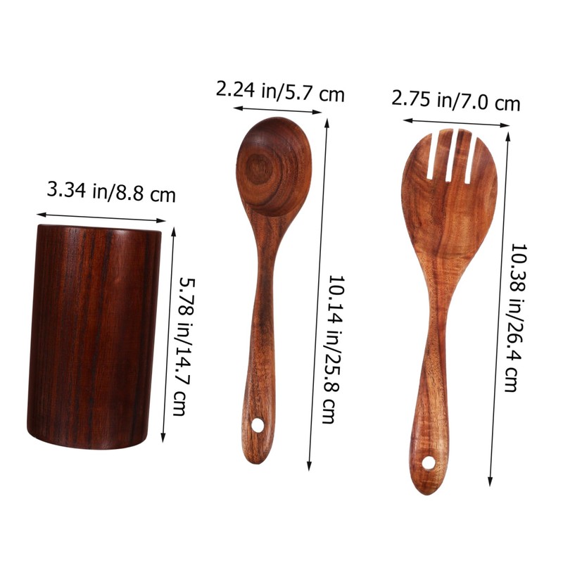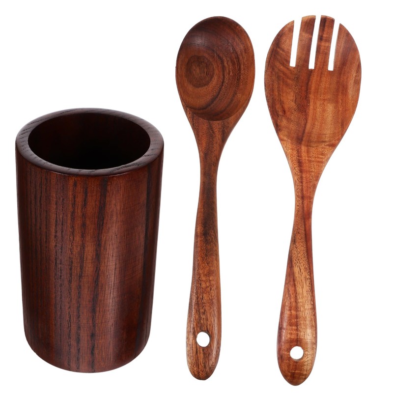 Mikinona Wooden Salad Fork Spoon Kit 3pcs Cutlery Set Kitchen Wood Utensils Cooking Set Utensil Holder Elegant Friends