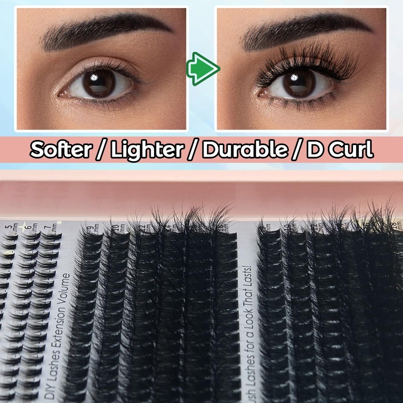 - Volume D Curl Eyelash Clusters:9mm-18mm mixes lash clusters,combination of 60D and 80D.The featured D curl lash clusters designed to add volume and lift to your lashes,creating a bolder and glamorous appearance