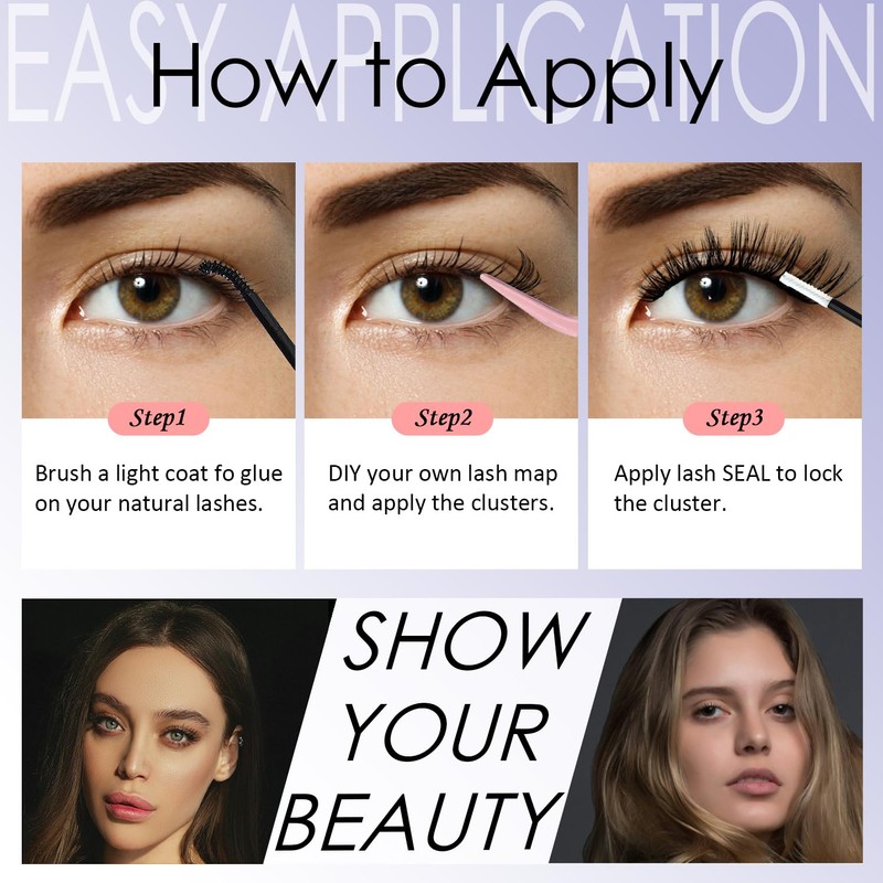 - Premium Quality: The lashes clusters are handcrafted from the finest synthetic fibers, ensuring a lightweight and comfortable wearing experience. They are designed to blend seamlessly with your natural lashes for a flawless and natural appearance
