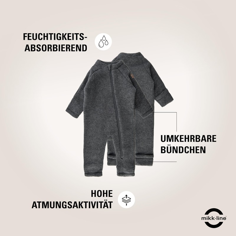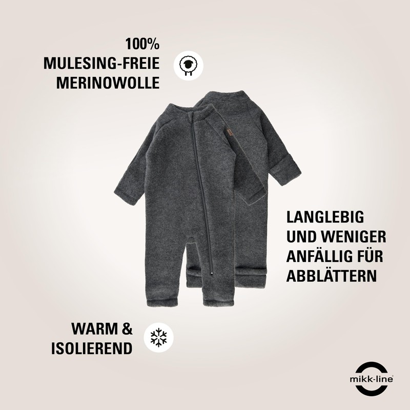 - Comfort and material quality - The Mikk-line brushed wool suit is made from mulesing-free merino wool, which is soft, breathable and temperature regulating. Ideal for sensitive baby skin, it offers hypoallergenic and chemical-free properties.