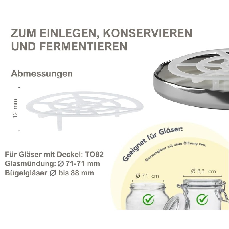 mikken 20 Plastic Grids Diameter 70 mm Fermentation Weight - Alternative to Canning and Fermenting - Suitable for Preserving Jars with TO 82 Lids